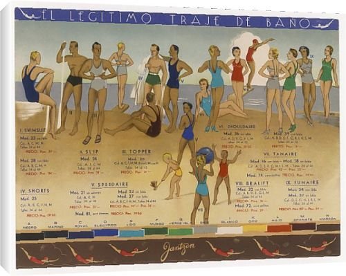 20x16 Canvas Print, White Sides. , SPANISH SWIMWEAR 1934. The latest swimwear for men, women and children . Chosen by Mary Evans. Photo printed on archival quality canvas. Laminated. Canvas print stretched and hand mounted over thick 1 3/8 inch wooden bars. No frame, Gallery art appearance. Ready to hang.